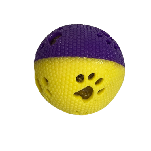 Pelota para Mascotas con Huellas y Cascabel | Plástico Resistente | 7.5 cm